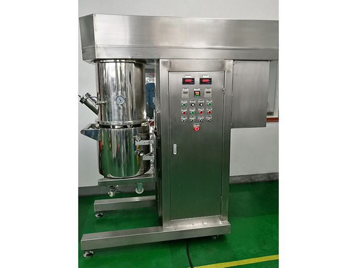 目前常見的行星攪拌機(jī)通常有兩個(gè)低速行星攪拌槳(通常為多斜槳葉式,麻花式,框式),一個(gè)或兩個(gè)高速行星攪拌槳(分散盤)和刮壁槳組成。
